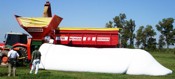 As the moisture levels of the grain to be bagged increase, so too does the risk of damage. Testing carried out by INTA has shown that the quality of grain with a high moisture content tends to decrease when it is stored in plastic silo bags for longer periods of time than recommended. Grain that is damp runs of course far more risks. Damp grain should only be stored in plastic bags in an emergency, when there is no available alternative. In such cases, trials have shown that installing an 80% sun-blocking mesh as a protective sunroof about 40 centimeters (some 12 inches) above the bag in the spring and summer months, in order to block direct sunlight, will result in lower temperatures inside the bag and sharply reduce the risk of damage. |